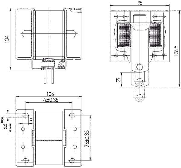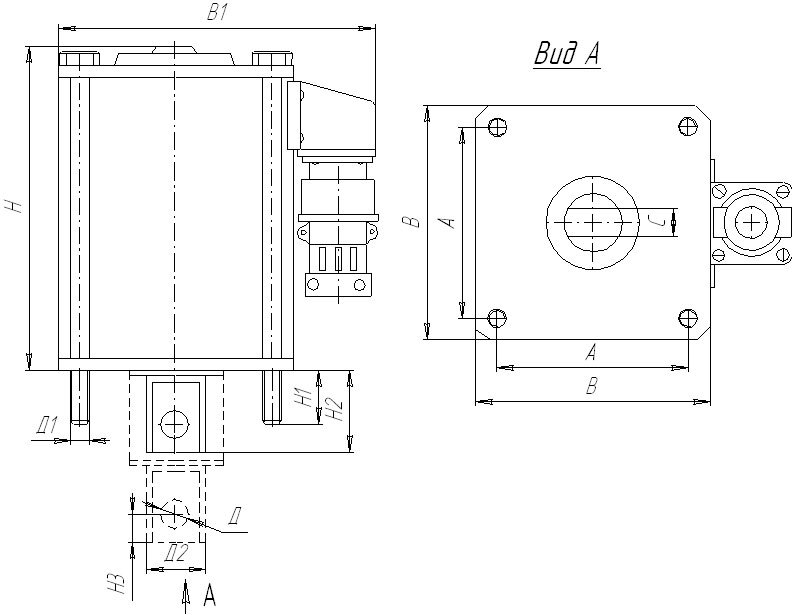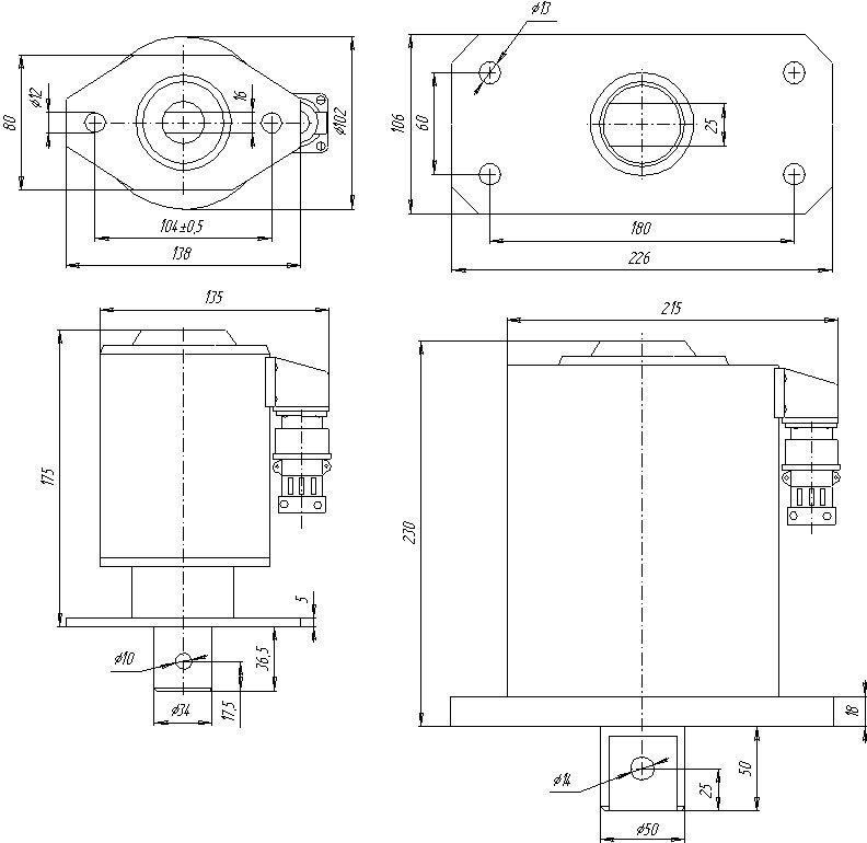 Электромагниты выпускаются в металлическом корпусе - серия М в чугунном корпусе -серия А На чертеже представлены габаритные размеры КМП-2М слева и КМП-4М справа.